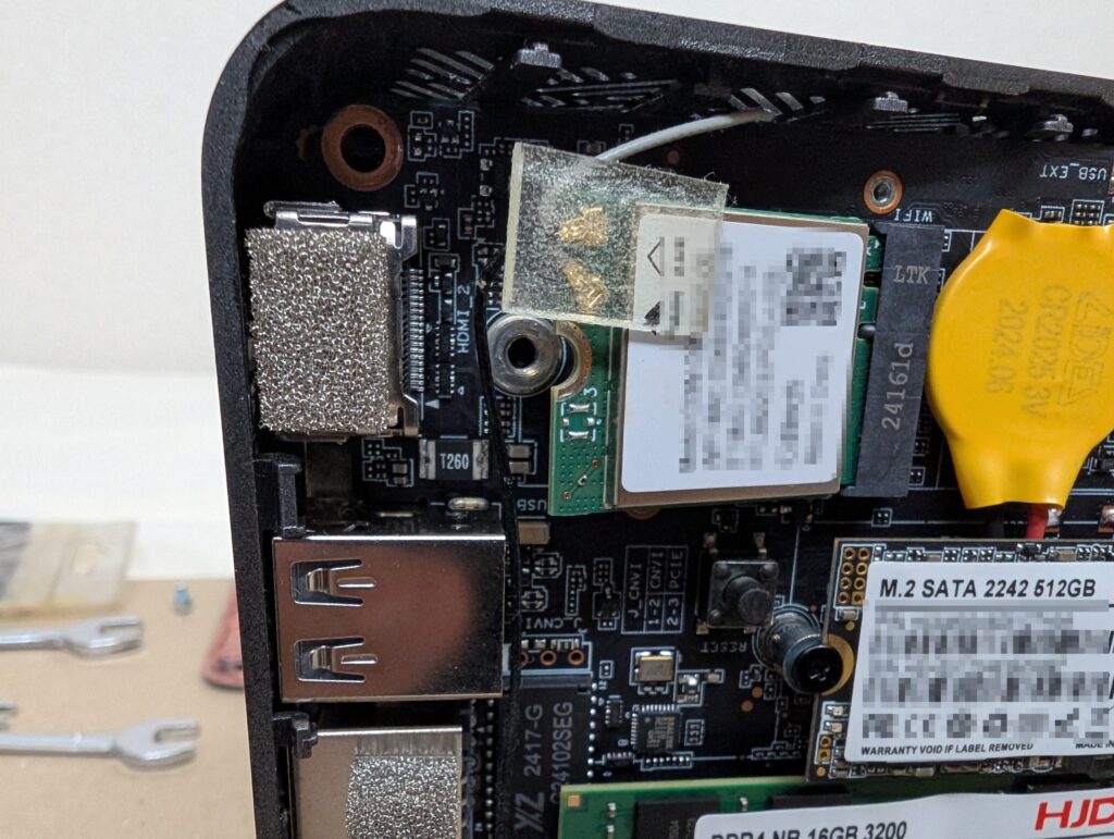 wifiカードのアンテナ線を覆っている透明樹脂カバーが