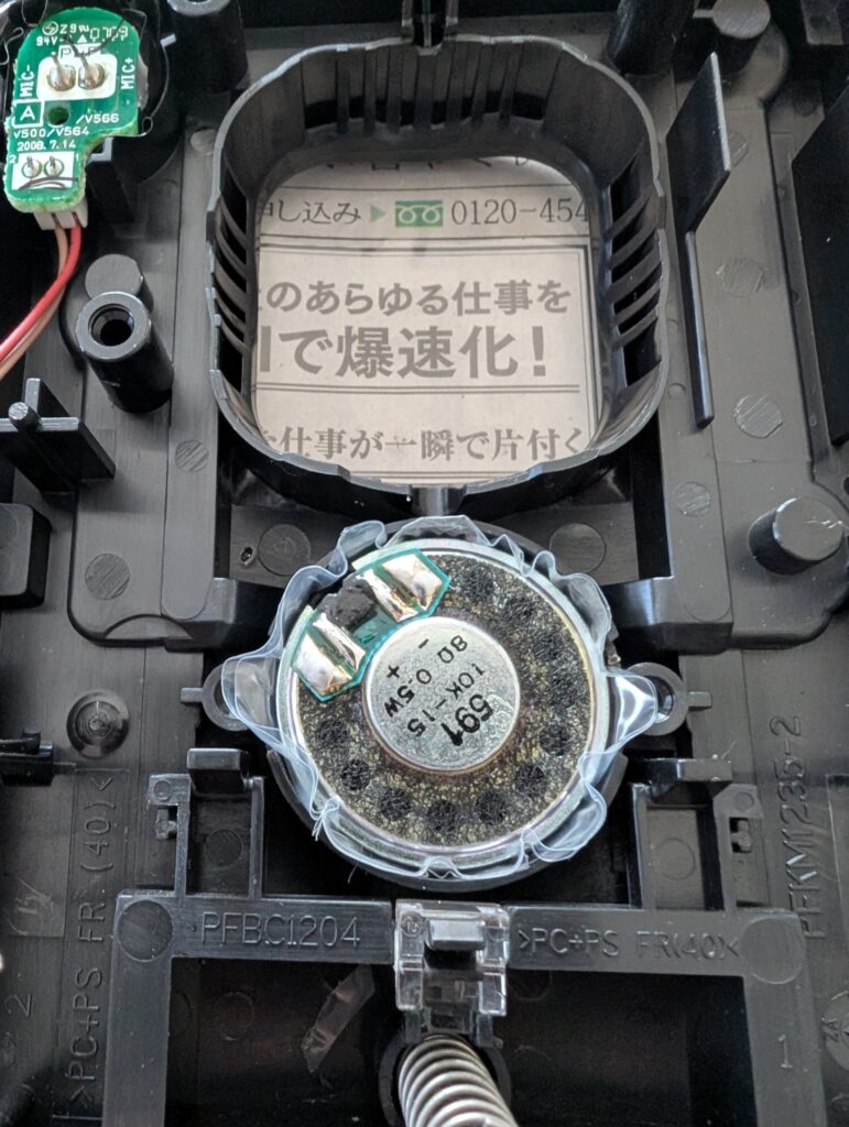 ネットで調べると大正解。子機のスピーカは壊れるらしい。