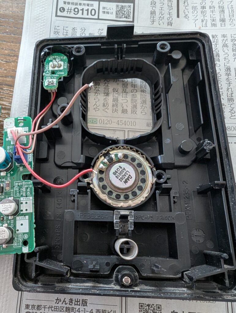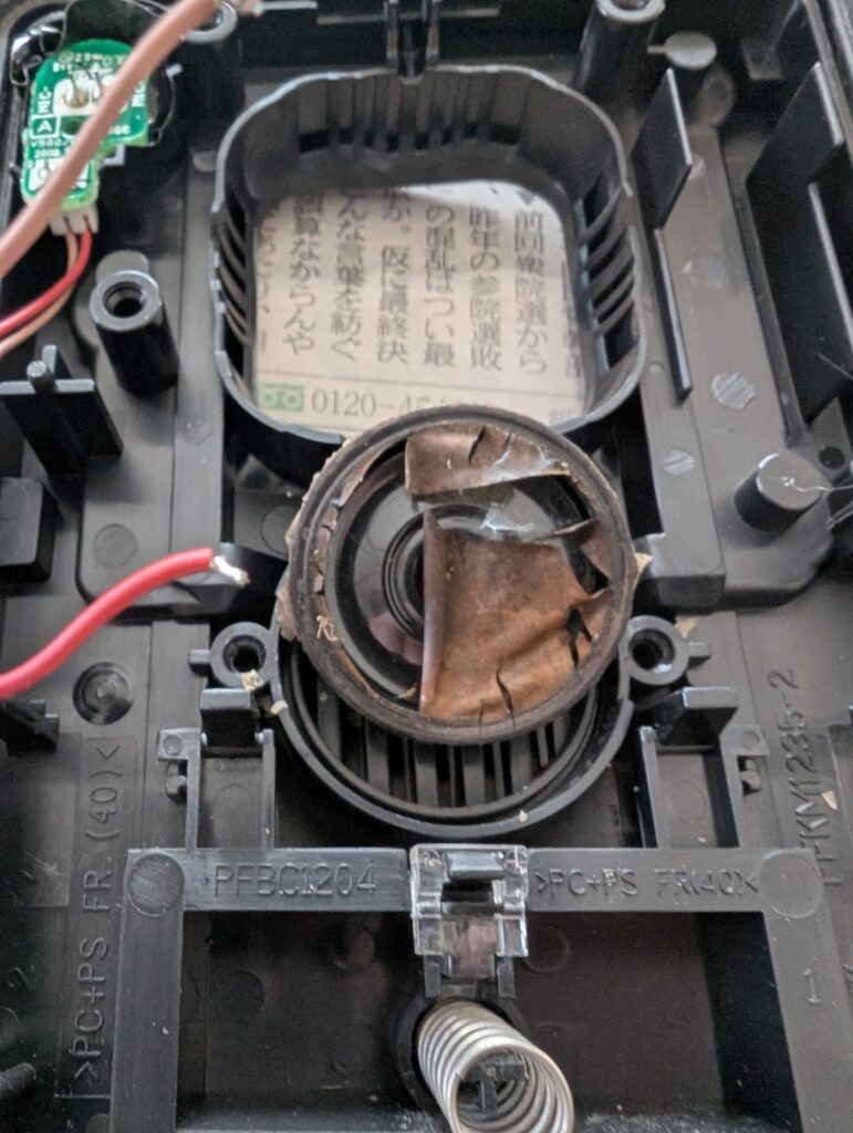 カバーが経年で劣化→水侵入→スピーカご臨終。